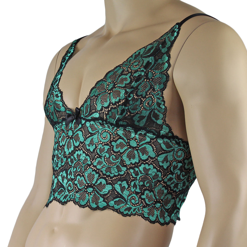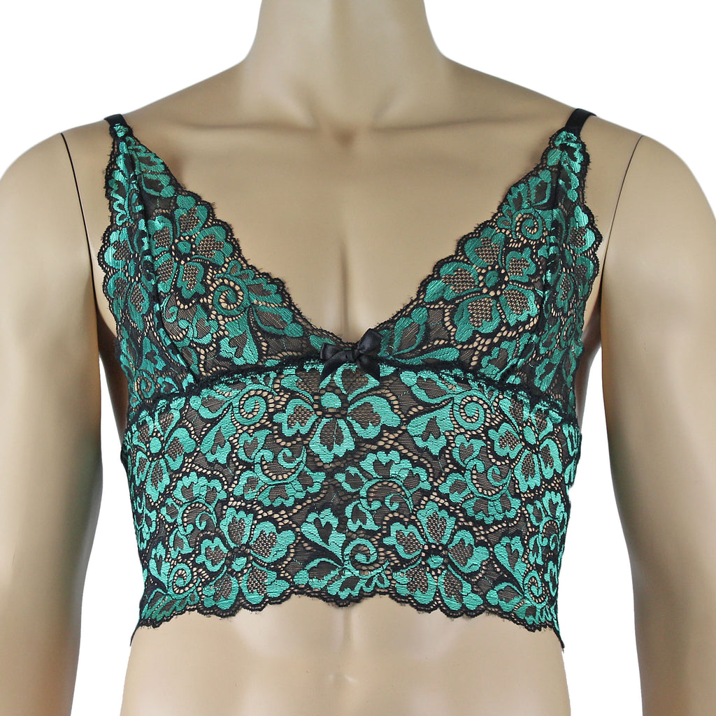 Mens Sweetheart Scalloped Shiny Lace Cami Bra Top for Males (green plus other colours)